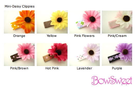 This tiny daisy is attached to a 1.75" ribbon-lined alligator clip (partially lined to allow for easy clipping), unless requested otherwise.